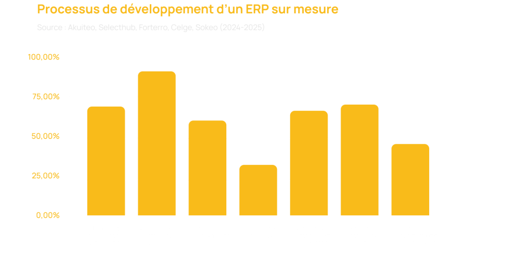 L’implémentation d’un ERP sur mesure se déroule en plusieurs étapes clés, visant à garantir une transition fluide et efficace. La phase de préparation est essentielle. Elle inclut la formation des équipes pour assurer une bonne prise en main de l’outil, mais également la migration des données existantes, réalisée de manière sécurisée et structurée. Le déploiement progressif est modulé par service ou par fonction. Cette approche limite les interruptions d’activité et permet d’ajuster l’outil en fonction des retours utilisateurs en temps réel. Chaque étape est accompagnée de tests pour s’assurer du bon fonctionnement des fonctionnalités. Après le lancement complet, une phase de suivi et d’optimisation est mise en place. Elle permet d’ajuster les processus, de corriger d’éventuels bugs et d’intégrer de nouvelles améliorations. Ce suivi post-implémentation garantit un ROI optimal et une adoption durable de l’ERP dans l’entreprise.