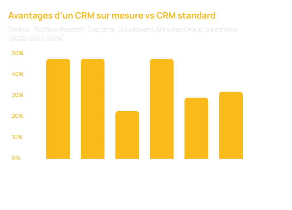 Un CRM sur mesure est pertinent si votre processus de vente est complexe, votre secteur présente des spécificités, votre entreprise génère un fort volume de leads et vous attendez un bon ROI. Il est aussi recommandé en cas de besoins d’intégration avec des systèmes propriétaires et d’outils internes.
