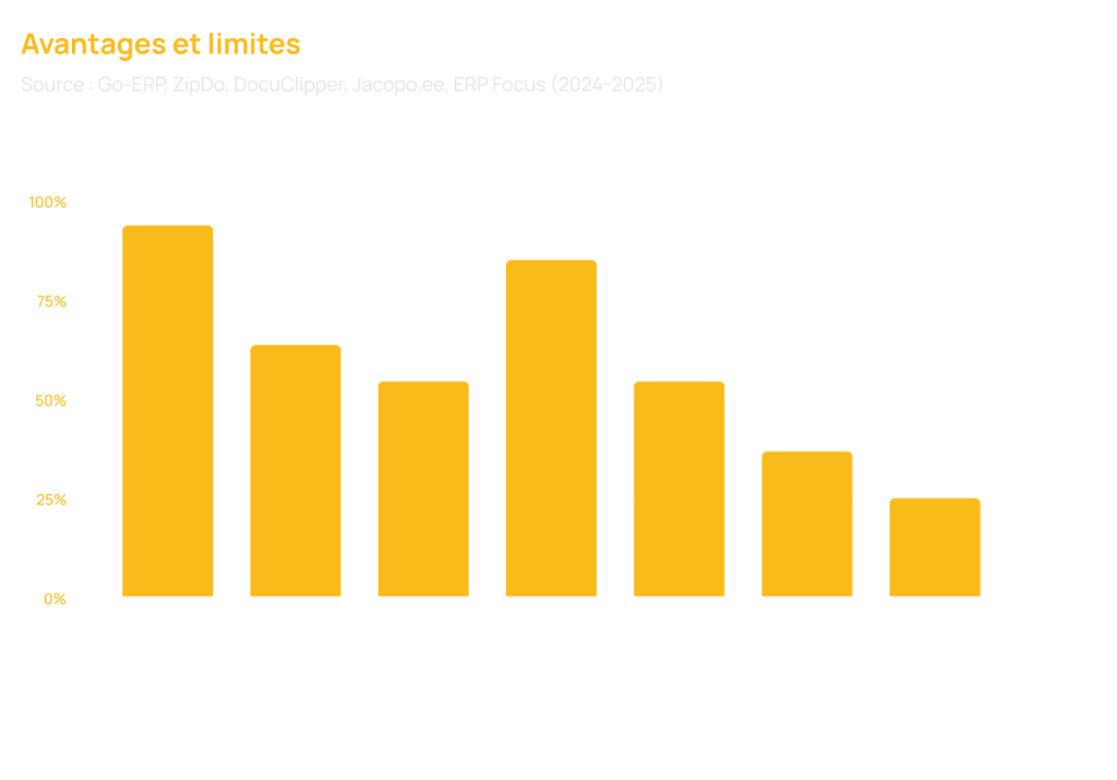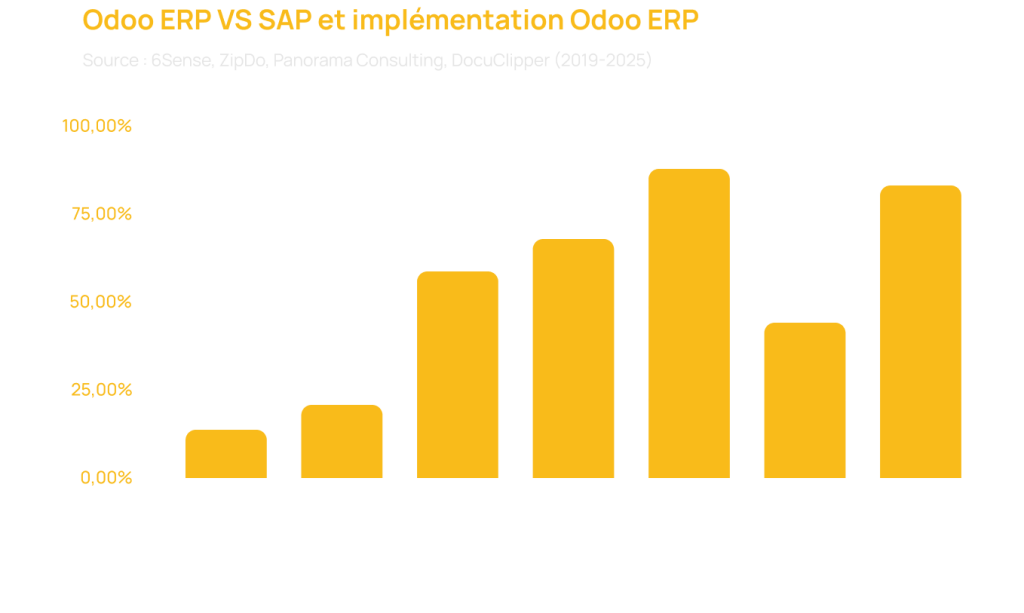 Comparé à SAP Business One, Odoo ERP se distingue par un coût total de possession (TCO) jusqu’à 70% inférieur sur 5 ans, ce qui en fait une solution particulièrement attractive pour les PME. Odoo offre également une flexibilité bien supérieure, grâce à son architecture modulaire et sa capacité à s’adapter facilement aux besoins métier spécifiques, sans dépendre d’un prestataire unique. En revanche, SAP reste plus adapté aux grandes entreprises avec des exigences complexes, des structures hiérarchiques lourdes et des processus très normés. Odoo combine la performance et l’agilité à moindre coût.