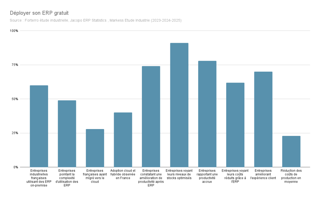Un ERP (Enterprise Resource Planning) gratuit peut véritablement transformer la gestion de votre entreprise, surtout si vous utilisez encore Excel, comme 73% des PME françaises, d’après Capterra. Bien que pratique au départ, Excel atteint vite ses limites comme les erreurs, les doublons et le manque de visibilité. Un ERP, même gratuit, centralise vos données, automatise les tâches répétitives et améliore la prise de décision. Il devient un levier essentiel pour accompagner la croissance de votre entreprise. Les économies potentielles sont réelles, certaines PME constatent jusqu’à 50 000€ d’économies par an grâce à une meilleure gestion de stocks, une facturation simplifiée et une réduction des erreurs. Dans ce guide complet, vous découvrirez les avantages concrets d’un ERP gratuit, les meilleurs outils disponibles, les étapes pour l’implémenter avec succès et des conseils pour éviter les pièges. Vous verrez comment un simple changement d’outil peut déclencher une transformation durable, sans grever votre budget. Téléchargez le guide et passez à l’action dès maintenant.