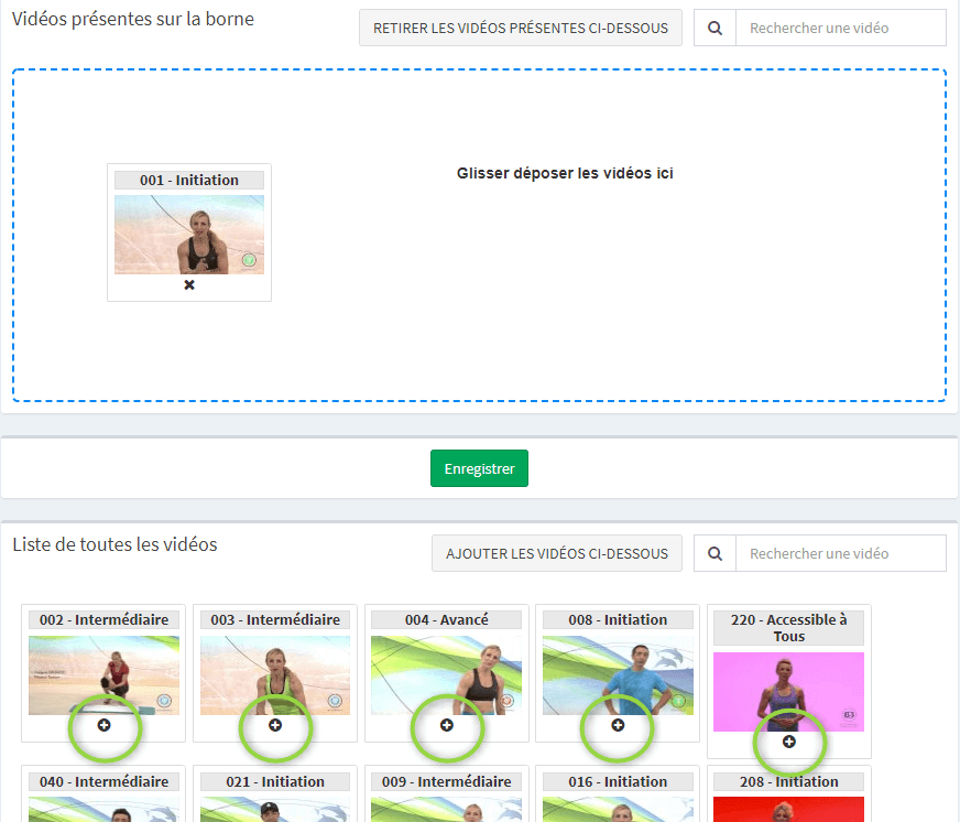 Important: Lorsque l’on parle de suppression de vidéos de la borne, les vidéos ne sont pas supprimées physiquement de la borne. Elles sont simplement rendues invisibles aux utilisateurs sur la borne.