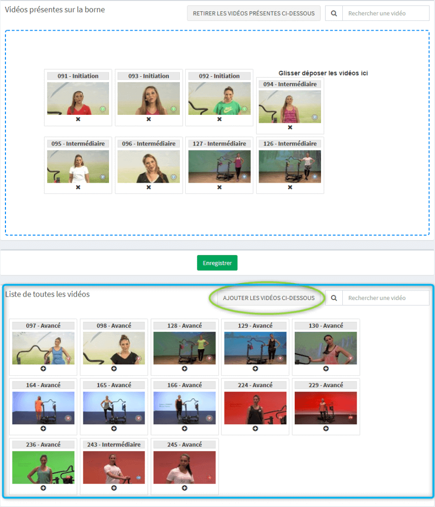Important: Lorsque l’on parle de suppression de vidéos de la borne, les vidéos ne sont pas supprimées physiquement de la borne. Elles sont simplement rendues invisibles aux utilisateurs sur la borne.