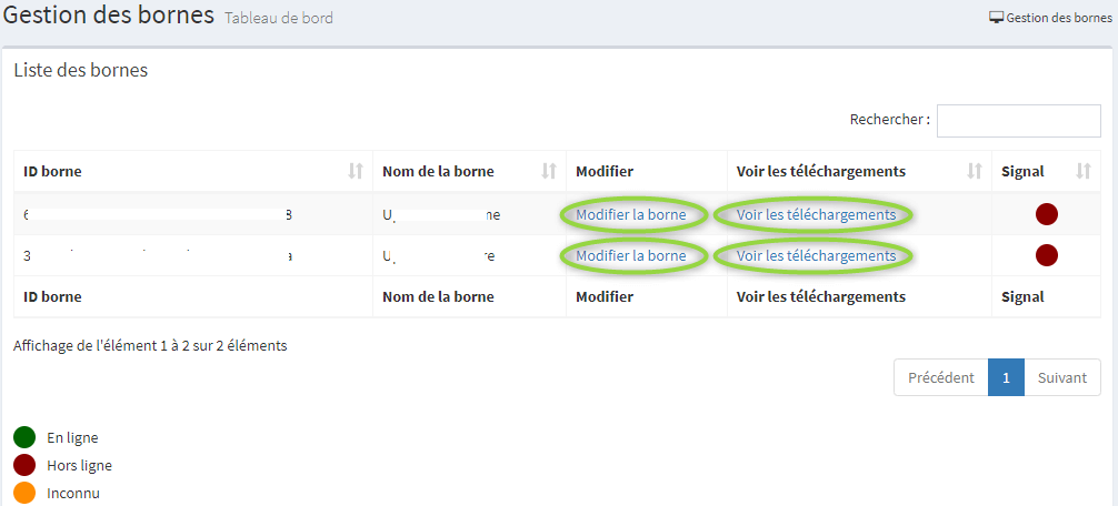 Le point de couleur « Signal« , vous permet de visualiser en temps réel si la borne est allumée et connectée à Internet.