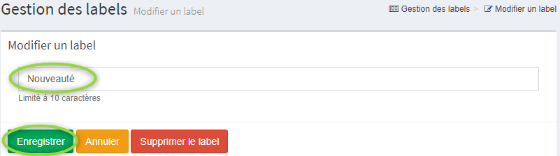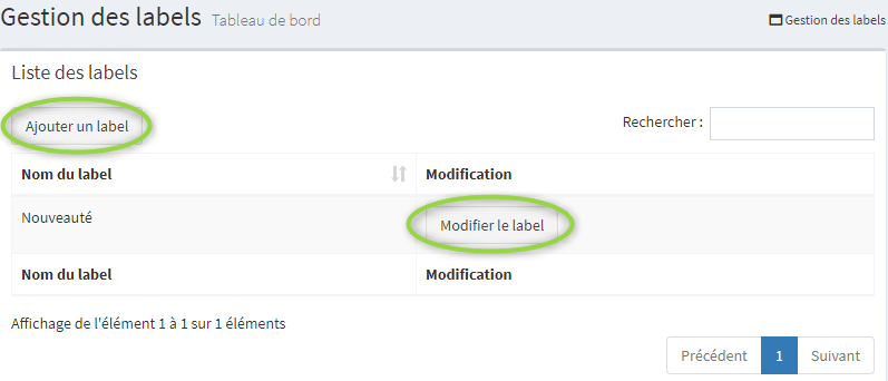 Le bouton « Ajouter un label » vous permet d’en ajouter autant que vous le souhaitez.
