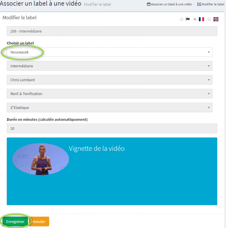 Le bouton « Supprimer le label » est uniquement disponible pour une modification de label (Attention: les vidéos associées à ce label n’auront plus de label).
